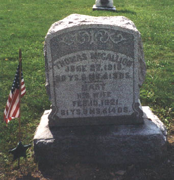 Thomas McCallion - s/o John & Sarah - Born Sept. 14, 1829 - died June 22, 1910.